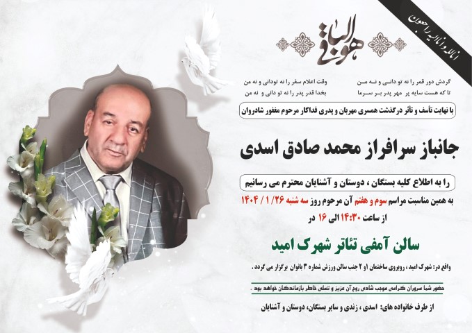 درگذشت پدر گرامی سرکار خانم صبیحه اسدی