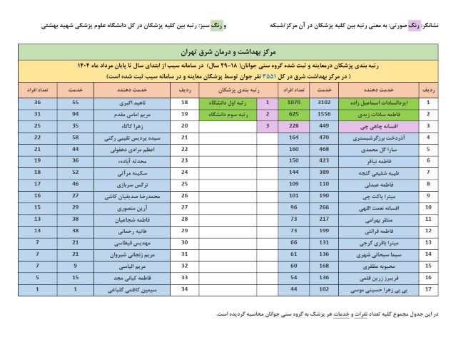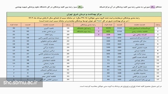 مرکز بهداشت شرق موفق شد در ارزیابی معاینات پزشکی جوانان ۱۸ تا ۲۹ سال، رتبه‌های برتر دانشگاه را به دست آورد.