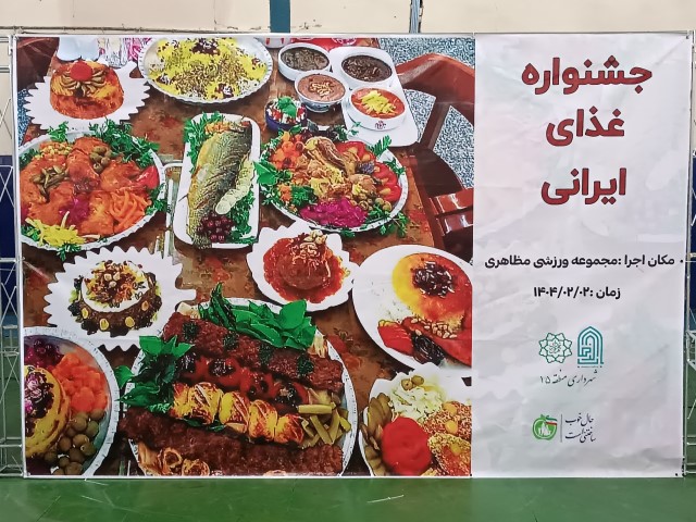 سه شنبه دوم اردیبهشت ماه 1404 همزمان با دومین روز از هفته سلامت  با شعار محیط سالم، جامعه سالم با مشارکت مردم    جشنواره غذای سالم ، با مشارکت اهالی محلات شرق تهران  ،  با پخت بیش از260  نوع  غذا با هدف تروریج و ترغیب به مصرف غذای سالم و بهداشتی و پرهیز از غذاهای آماده و فست فودی برگزار شد .  در این مراسم که با حضور دکتر  امیر علی فریدونفر و دکتر مجید طاهری رئیس و معاون مرکز بهداشت شرق تهران برگزارشد.،  دکتر اکرم بارگیر و فاطمه شیخ حسین کارشناسان تغذیه مرکز بهداشت شرق تهران که کار  داوری  این جشنواره  را برعهده داشتند.پس از  بررسی 260  غذای موجود در این جشنواره   ،30 تا از غذاها را  بر اساس چک لیست تغذیه سالم ،  به عنوان غذای منتخب به برگزار کنندگان معرفی  کردند .  که در پایان مراسم  به 30 نفر از  شرکت کنندگان برتر هدیه ای از طرف اداره سلامت شهرداری منطقه 15 اهداء شد.