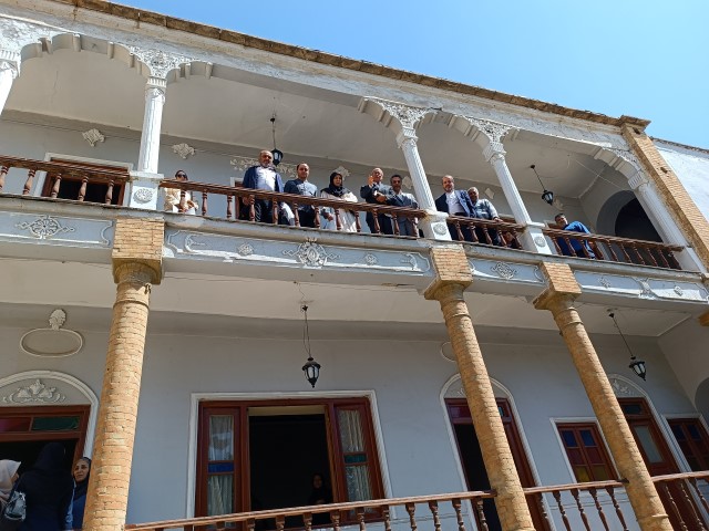 پس از اهدای لوح تقدیر و هدایا، حاضرین در این نشست صمیمانه از عمارت تاریخی خانه مؤتمنالاطباء بازدید کردند. این اثر باشکوه که در محله عودلاجان، خیابان پامنار، کوچه مؤتمنالاطباء واقع شده، یکی از برجستهترین نمونههای معماری دوره قاجار است. این عمارت در سال ۱۲۶۱ شمسی احداث شده و به عنوان اولین خانه سهطبقه تهران شناخته میشود؛ بنایی که ناصرالدینشاه را نیز تحت تأثیر ساختار نوآورانهاش قرار داد. ملک این بنا متعلق به میرزا زینالعابدینخان دنبلی ضرابی، معروف به مؤتمنالاطباء – پزشک دربار قاجار و از نخستین فارغالتحصیلان مدرسه دارالفنون – بوده است