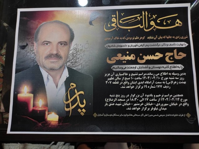 درگذشت پدرگرامی همکار محترم جناب آقای مهدی منیعی
